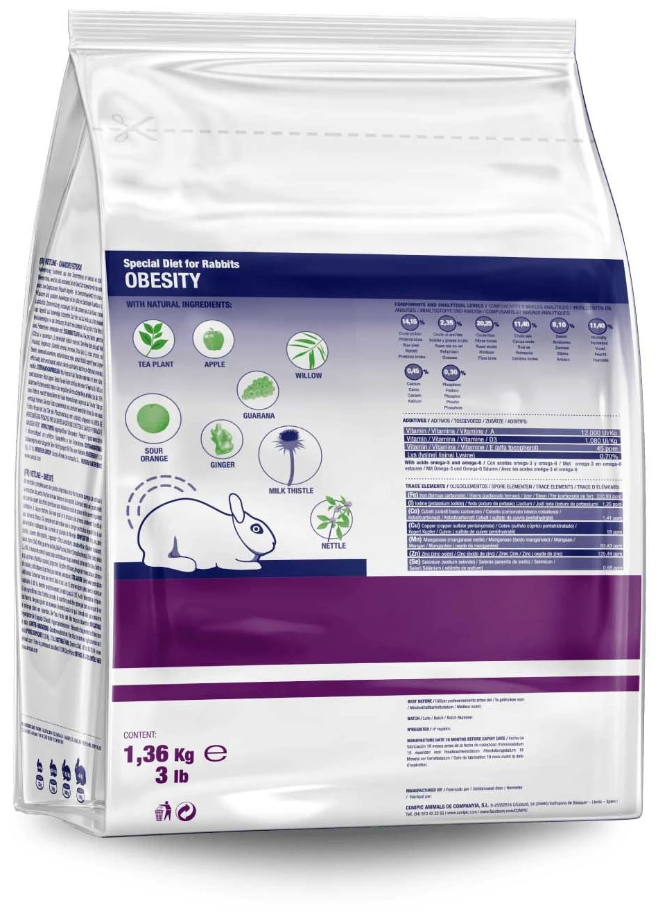 Aliment complet formulé avec des plantes médicinales et du foin d’herbe sauvage qui aide à réduire le poids chez les animaux obèses ou à l’obésité. Sa formule comprend une grande variété de plantes aux effets bénéfiques pour réduire l’excès de graisse et peut également contribuer à l’usure des dents. Sa bonne palatabilité et la structure de l’aliment améliorent l’appétit de ces aliments fibreux.