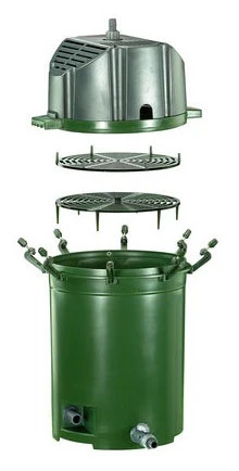 – Peut être équipé d’éponges filtrantes et / ou de matériaux de filtration en vrac