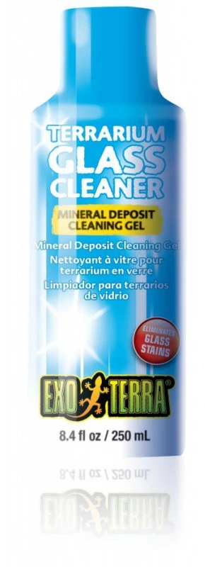 Le nettoyant à vitre Exo Terra est un gel qui s’applique facilement et qui a été conçu pour déloger les taches calcaires des terrariums en verre générées par la pulvérisation d’eau du robinet, laquelle constitue une source importante de taches d’eau dure dans les terrariums. Par ailleurs, ce produit déloge facilement les dépôts calcaires tenaces qu’entraîne l’utilisation des systèmes de brumisation, tel le Monsoon RS400 Exo Terra. Sa formule non toxique est EXEMPTE d’ammoniac, d’alcool, de colorant, de fragrance et pétrochimique.-Fait disparaître les taches sur les vitres-Enlève rapidement et efficacement divers dépôts minéraux-S’applique facilement et bien-Efficace sur le verre, le plastique et d’autres surfaces lisses-Excellent produit pour enlever les taches calcaires.Mode d’emploi :-Utiliser une serviette de papier ou un chiffon propre et sec pour appliquer le produit en gel sur la surface de verre, de plastique ou toute autre surface lisse.-Laisser le gel réagir sur les dépôts calcaires pendant quelques minutes.-Frotter doucement les taches en employant un mouvement circulaire de l’extérieur vers leur centre.-Utiliser de l’eau pour rincer la surface et sécher celle?ci au moyen d’un chiffon sec.-Si une tache n’est pas disparue, répéter l’opération.Contient: <5% EDTA et sels.Ingrédients:Eau, citrate trisodique, l’acide citrique,éthylènediaminetétraacétate de sodium, carboxymethyle purifiée.