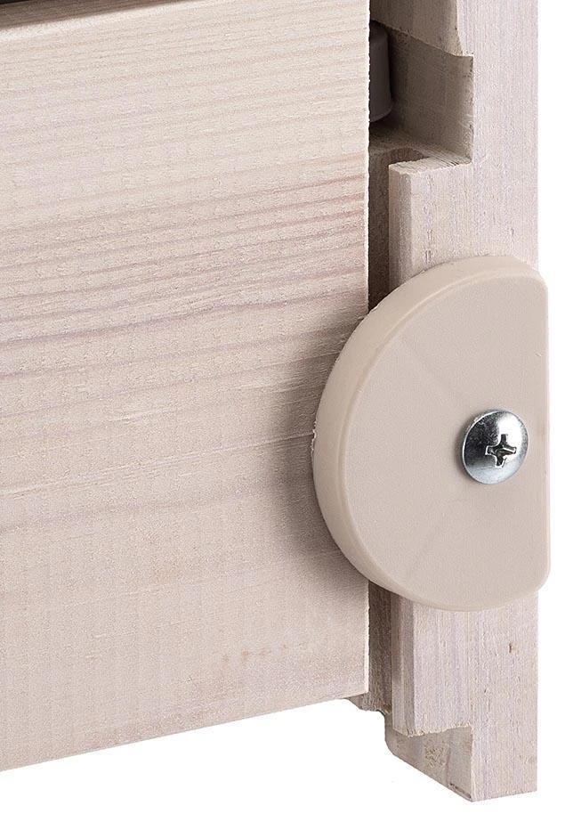L’habitat est fourni avec un plateau amovible utile pour les opérations rapides de nettoyage et d’entretien : le plastique inférieur est caché par une petite porte en bois qui ne peut être soulevée qu’en ouvrant les verrous en bois sur les côtés.