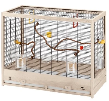 Elle est équipée de tous les accessoires nécessaires pour accueillir vos amis à plumes à n’importe quel moment. A l’intérieur, vous trouverez des mangeoires rotatives et extractibles, un abreuvoir et une pince. De plus les perchoirs en plastique modulables Flex permettent une grande liberté.
