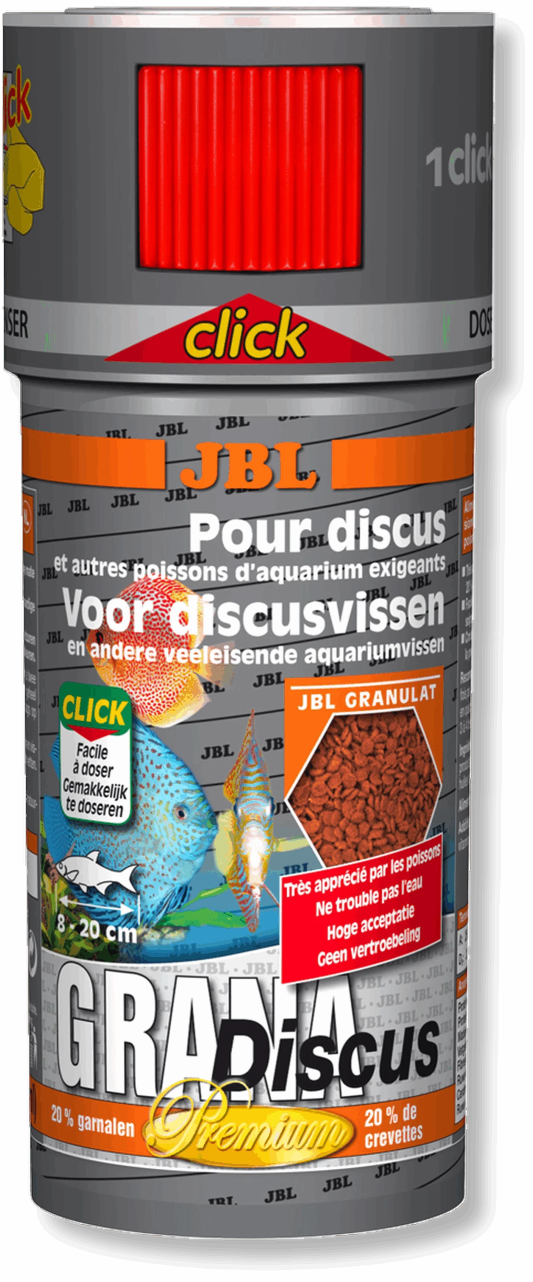Aliment de base Premium en granulés pour discus, avec doseur à clics.