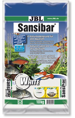 Substrat de sol blanc fin pour aquariums d’eau douce ou d’eau de mer.