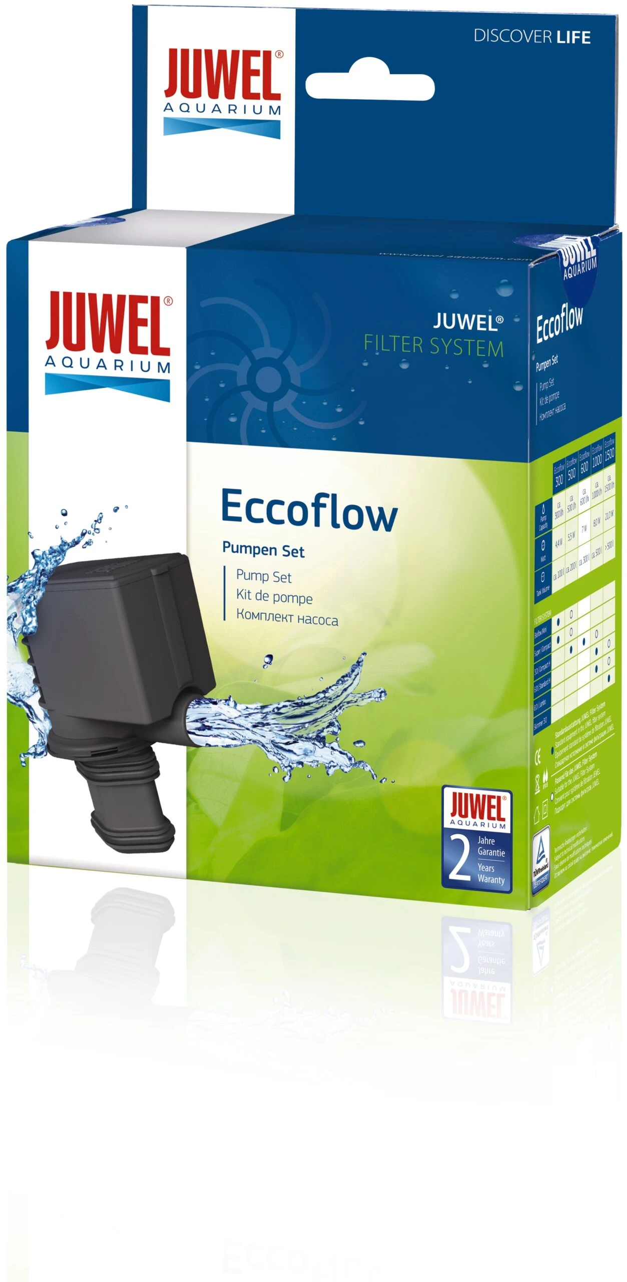 Les pompes JUWEL Eccoflow existent dans les catégories de puissance de 500, 600 et 1500 l/h et sont optimisées pour être utilisées dans le système de filtration JUWEL.