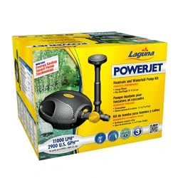 La pompe équipée PowerJet 2900 Laguna de haut rendement pour cascade et fontaine contient tout ce qu’il faut pour générer une puissante circulation d’eau et créer de superbes décors aquatiques, y compris une puissante pompe à eau PowerJet 2900, un tube de montée et deux jets de fontaine interchangeables.