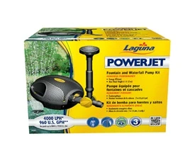 La pompe équipée PowerJet 960 Laguna de haut rendement pour cascade et fontaine contient tout ce qu’il faut pour générer une puissante circulation d’eau et créer de superbes décors aquatiques, y compris une puissante pompe à eau PowerJet 960, un tube de montée et deux jets de fontaine interchangeables.