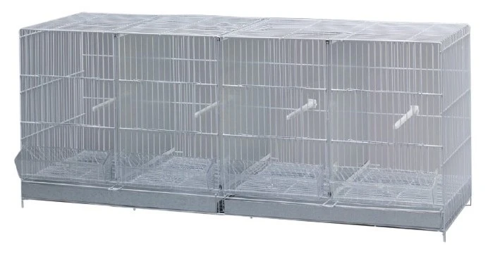 Cage d’élevage divisible en quatre sections pour oiseaux, en tôle d’acier, très fonctionnelle.