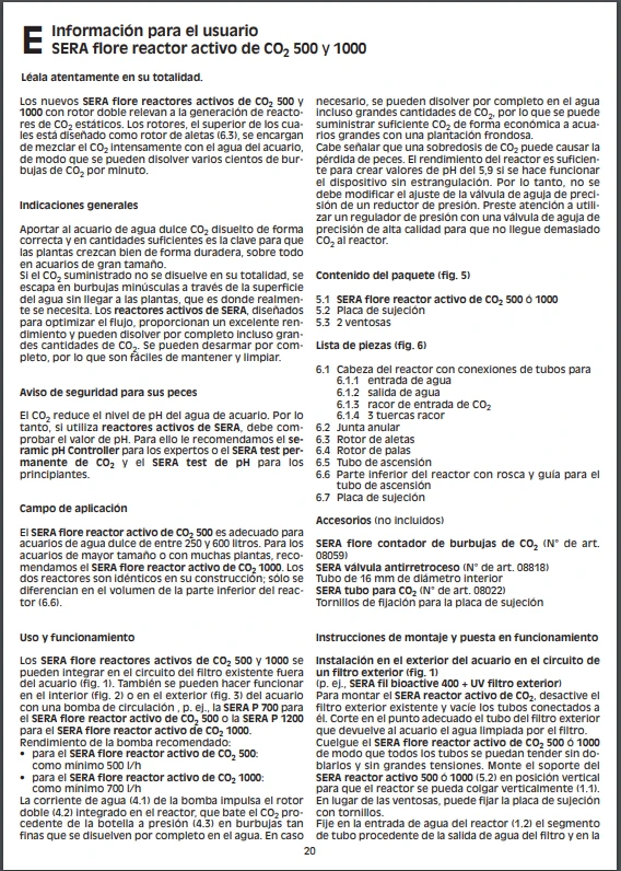 Le réacteur CO2 actif SERA flore est intégré dans un cycle de l’eau existant (par exemple, un filtre externe) ou, alternativement, peut être exploité au moyen d’une pompe. Les rotors sont chargés de mélanger intensivement le CO2 à l’eau de l’aquarium, de sorte que plusieurs centaines de bulles de CO2 peuvent être dissoutes par minute. Selon le type d’installation, le réacteur peut être fixé à l’intérieur ou à l’extérieur de l’aquarium (par exemple dans une armoire inférieure) à l’aide du support inclus dans le kit. La couleur du matériau (gris) est efficace contre la croissance des algues. Facile à nettoyer. Recommandation : SERA flore active CO2 reactor 500 (jusqu’à 500 bulles de CO2 par minute) : pour les aquariums entre 250 et 600 litres SERA flore active CO2 reactor 1000 (jusqu’à 1 000 bulles de CO2 par minute) : pour les aquariums de plus de 600 litres et les aquariums avec un grand nombre de plantes.