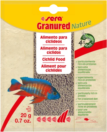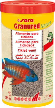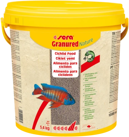 sera Granured est l’aliment composé à base de granulés fabriqués selon un procédé spécial, pour les petits Cichlidés principalement carnivores et omnivores.