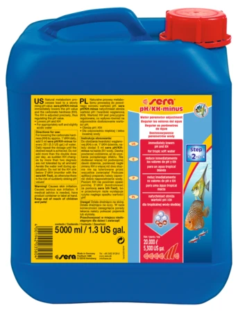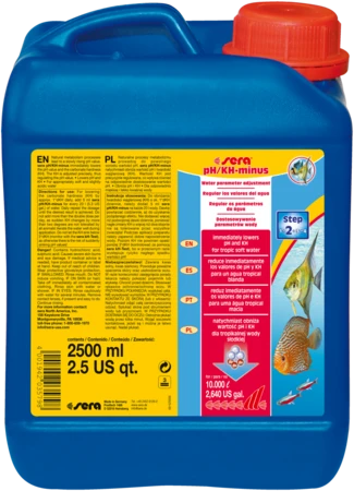 Pour le maintien durable de conditions d’une eau tropicale à faible dureté, ajustez le KH à 4° dKH (x 1,78 = TAC valeur française) avec sera pH/KH-moins et, ensuite, mettez sera super peat dans le filtre.