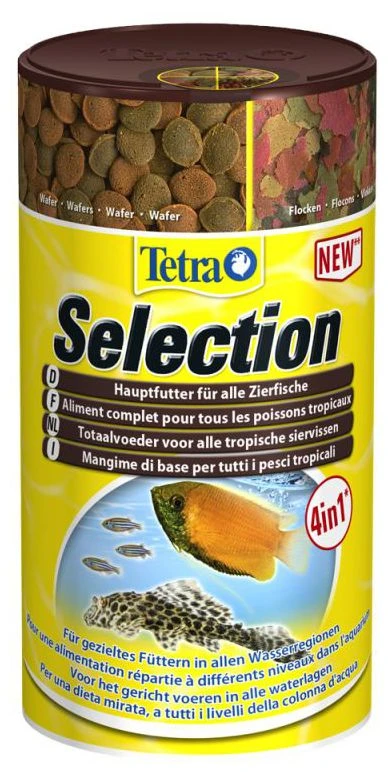 Nourriture pour poissons tropicaux avec une sélection de 4 aliments variés.Tetra Selection offre une alimentation variée pour les poissons d’ornement qui se nourrissent à différentes profondeurs.Chaque nourriture flotte dans un niveau d’aquarium différent.Format : 100 ml ou 250 ml.