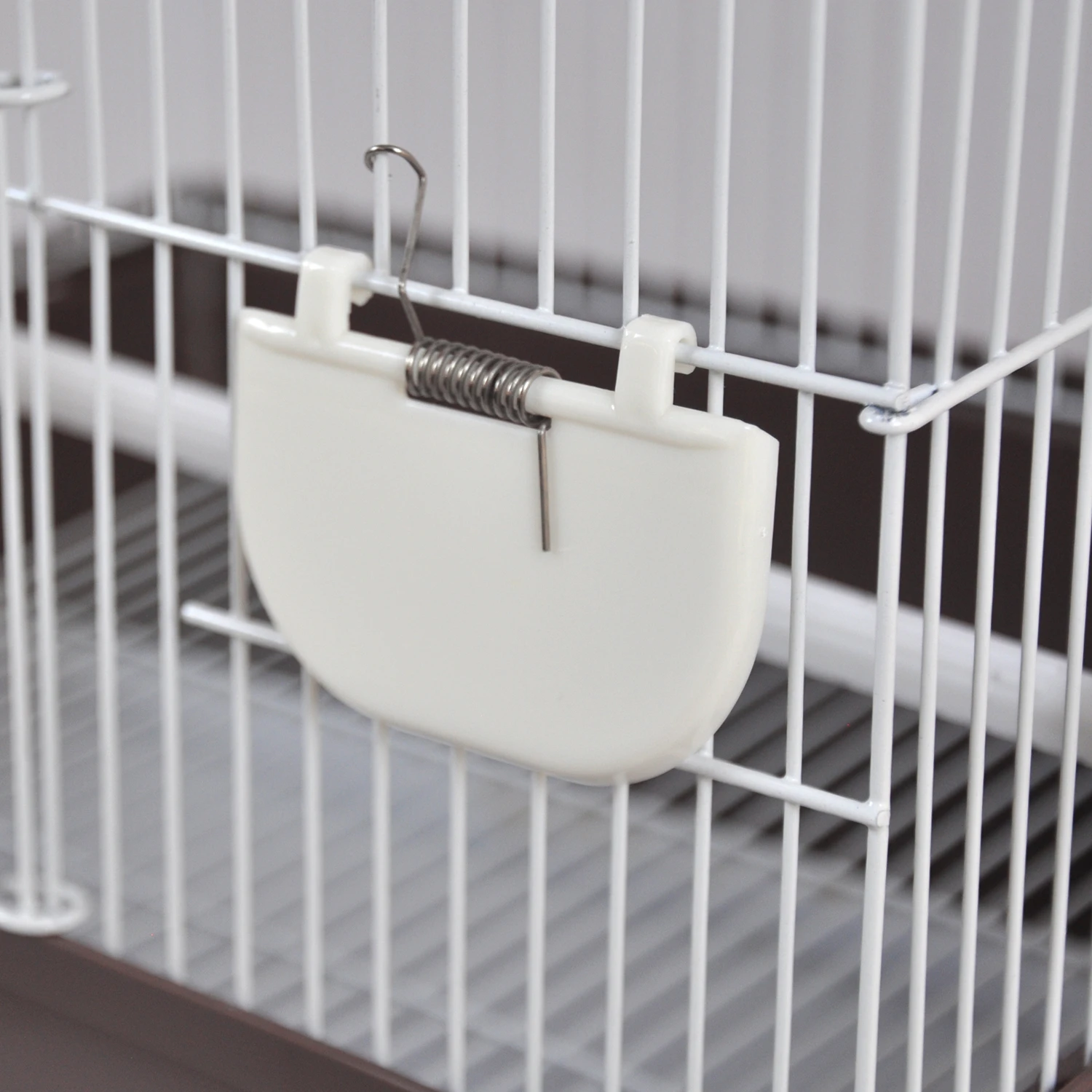 Cage rectangulaire pour les petits oiseaux avec deux eaux toit. La partie supérieure peut être facilement démontée pour un nettoyage correct.