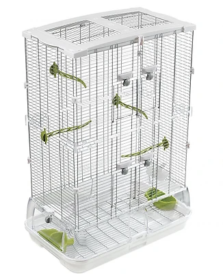 <br/ > Comprend : perchoirs verts, augets à eau et à nourriture verts.