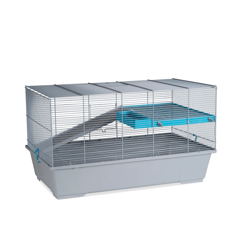 Cette cage horizontale de taille moyenne est idéale pour les rats, les degus et les gerbilles. Fabriqué en Europe (Espagne), avec une peinture époxy sans plomb et un plastique polypropylène non toxique.